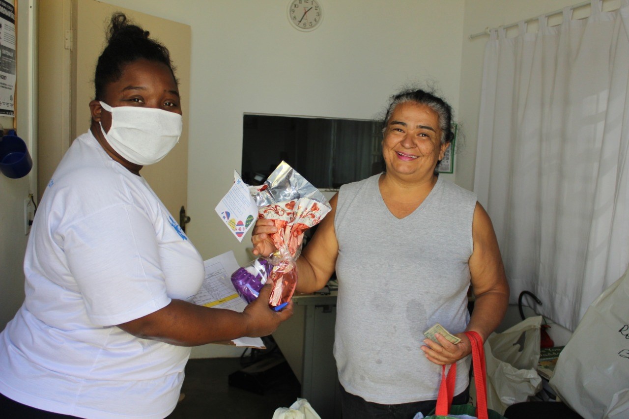 Os produtos distribuídos são resultado desse esforço coletivo e estão sendo entregues a todos com muito carinho. Com essa ação, conseguimos deixar mais doce a páscoa de nossas crianças, e tudo isso só foi possível porque contamos com pessoas como D.Neide e Tercila, que se ofereceram para fazer todos os ovos de páscoa. E também como a Fundação Amor Horizontal, que doou colombas pascais e cestas básicas.